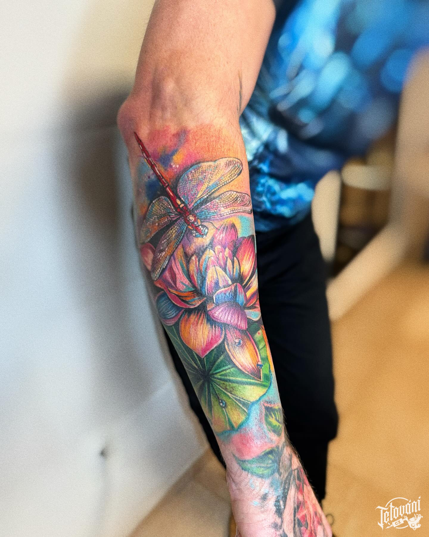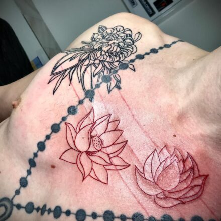 Tetování květina lotos, srdíčko a tři tečky na prstech