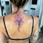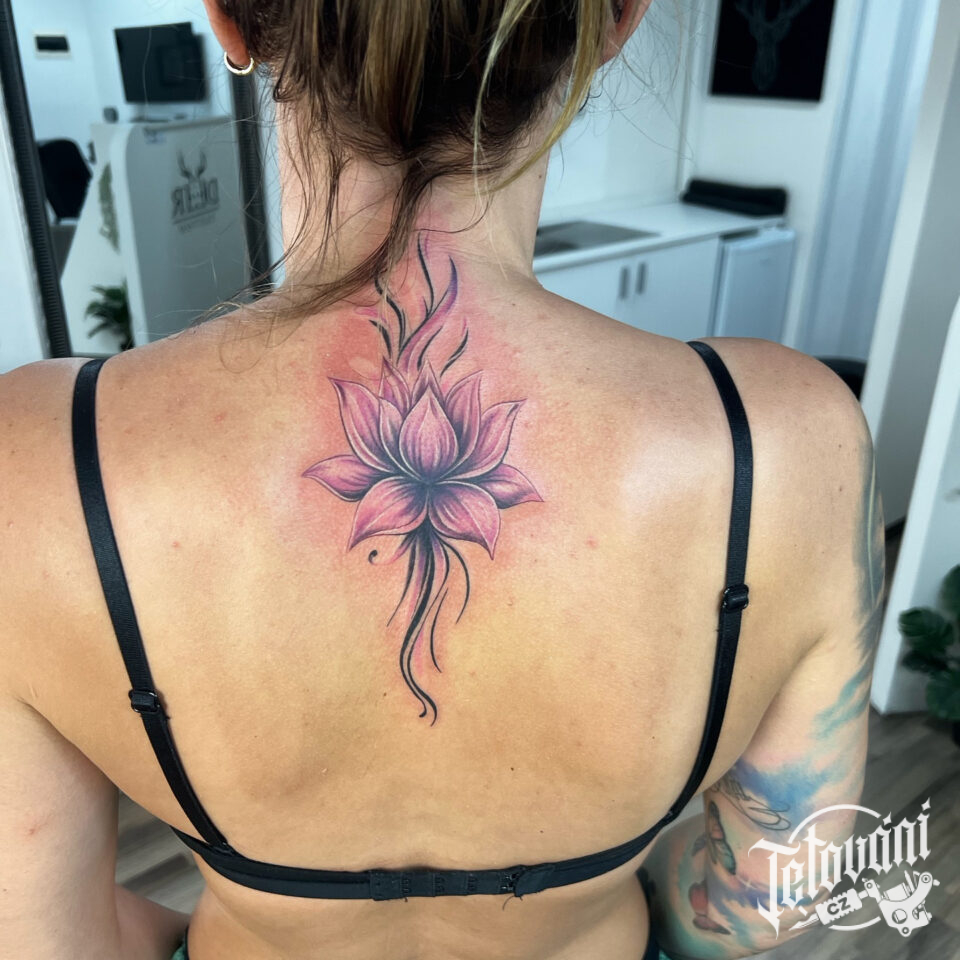 Tetování květina, lotosový květ mezi lopatkami