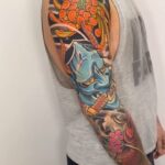 Tetování květina, maska a zvíře, ryba, rukáv