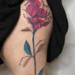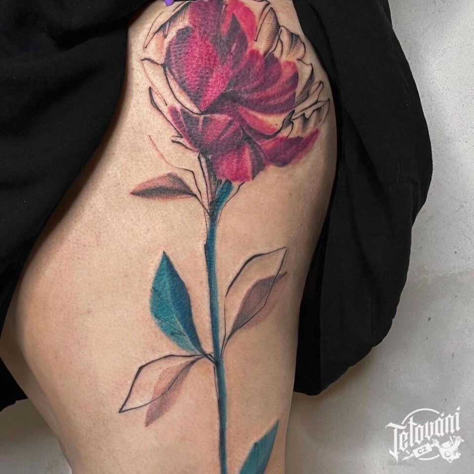 Tetování květina na boku stehna