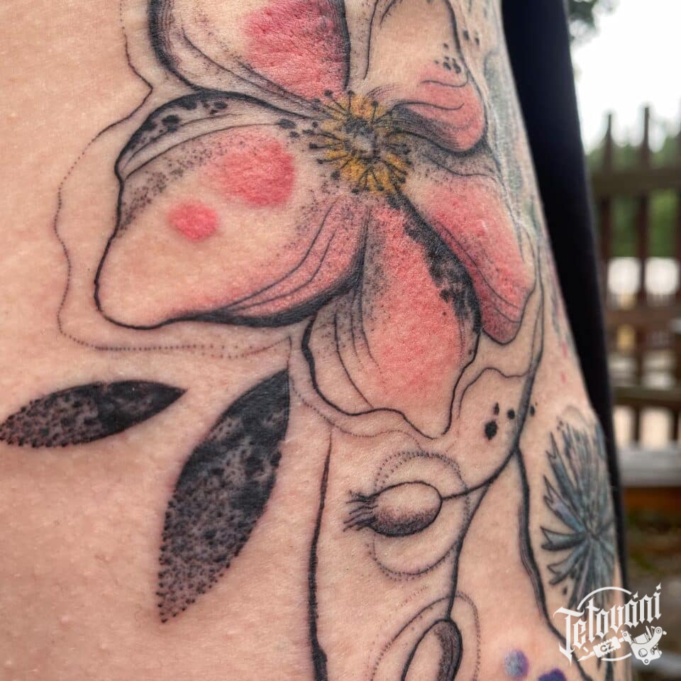 Tetování květina na boku...