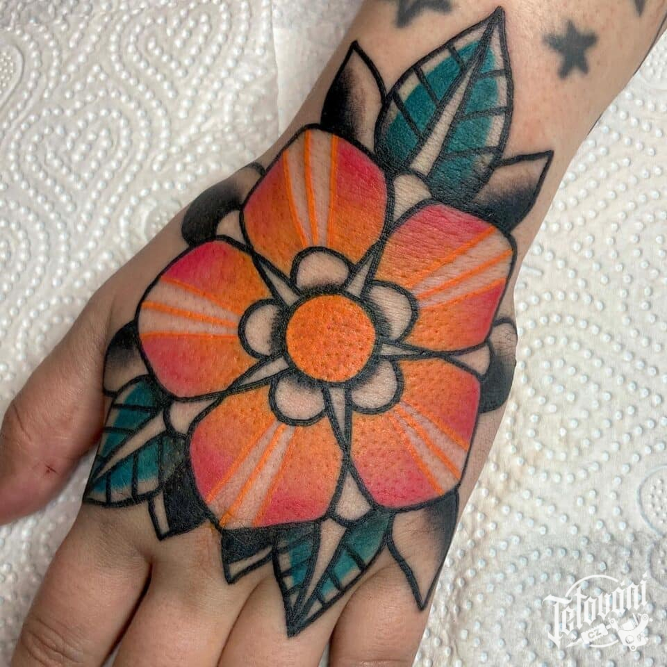 Tetování květina na hřbetu ruky