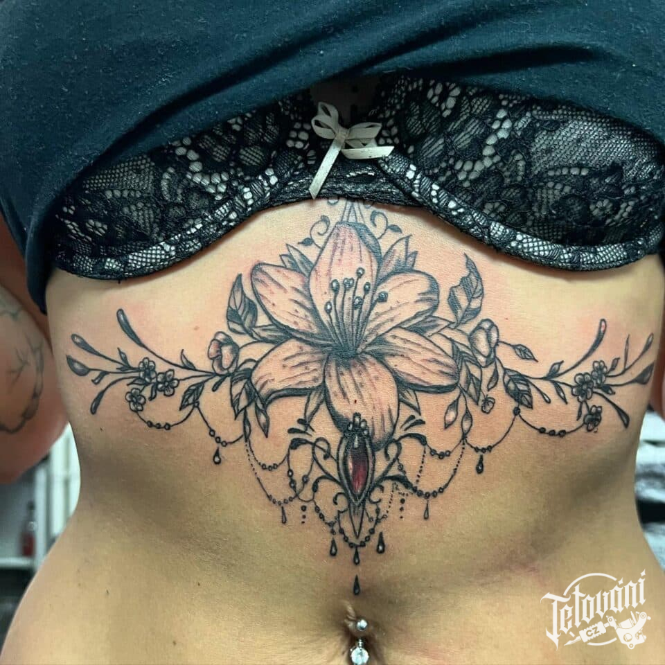 Tetování květina na hrud...