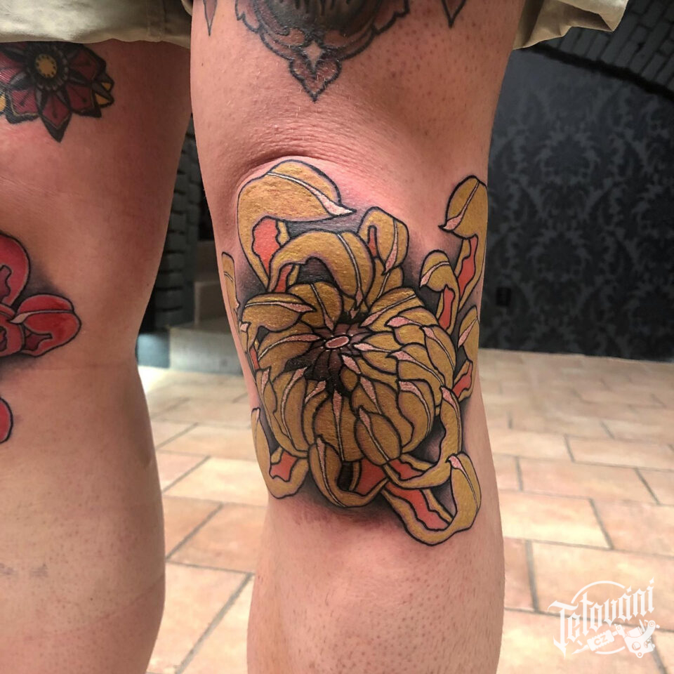 Tetování květina na koleni