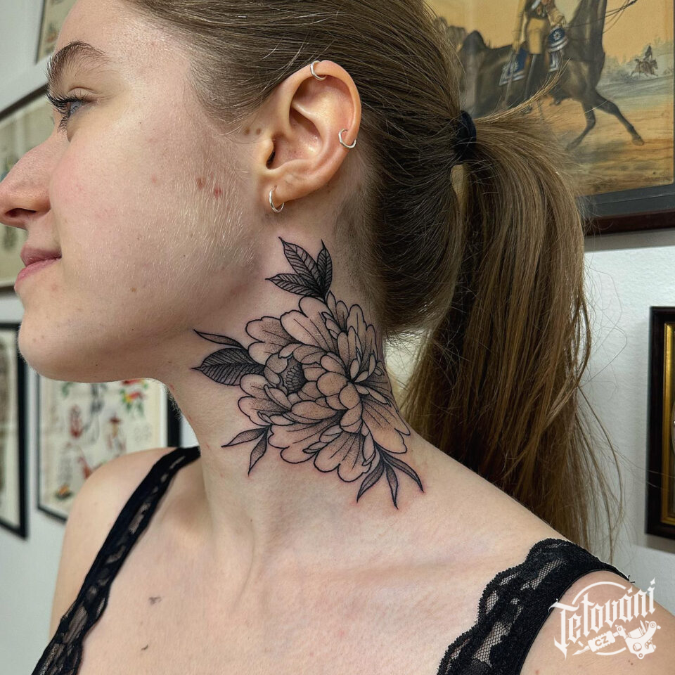 Tetování květina na krk