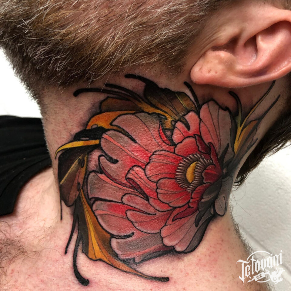Tetování květina na krku