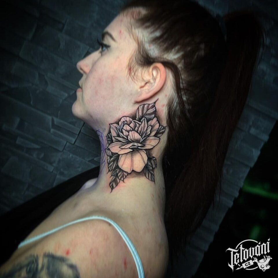 Tetování květina na krku