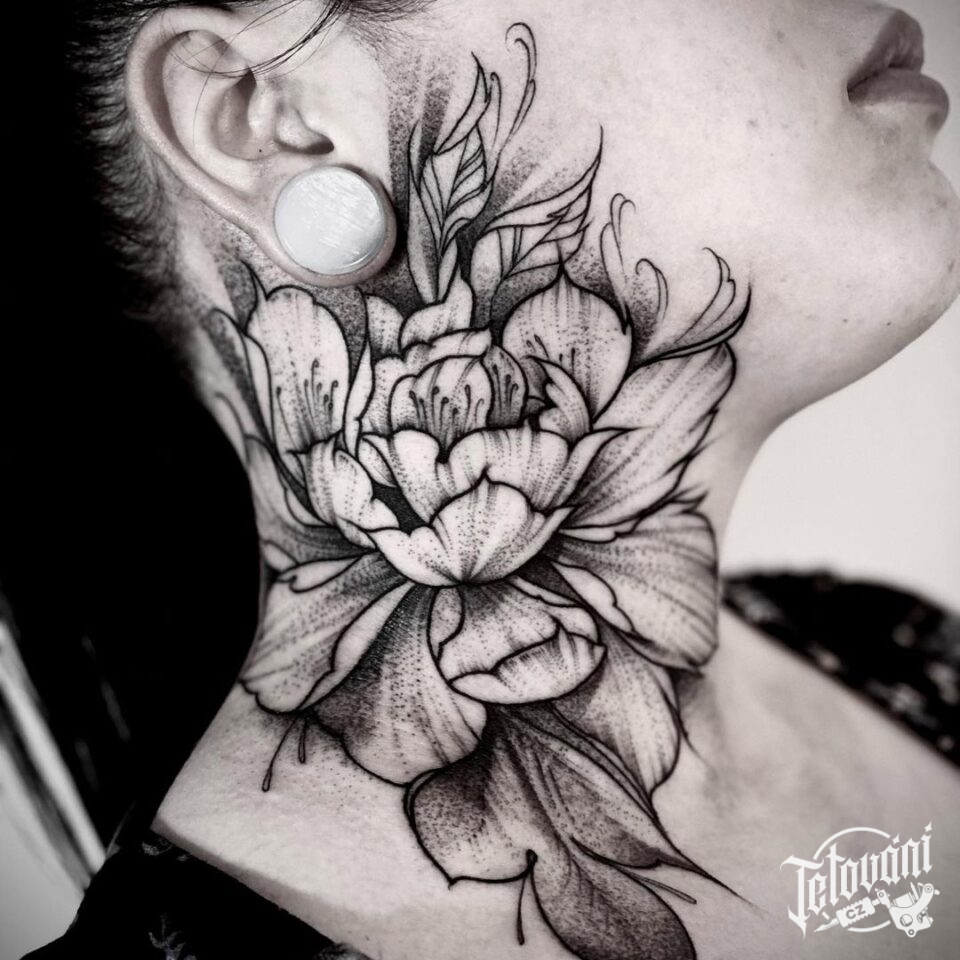 Tetování květina na krku