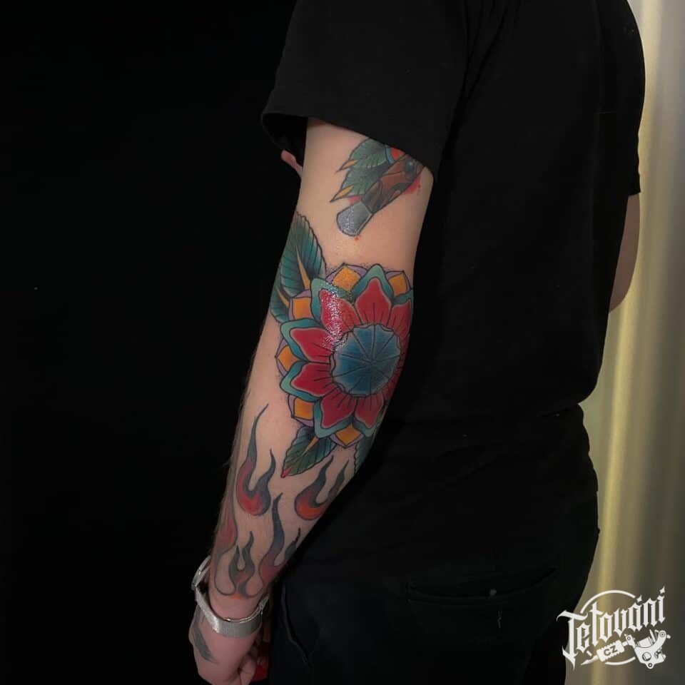 Tetování květina na loktu
