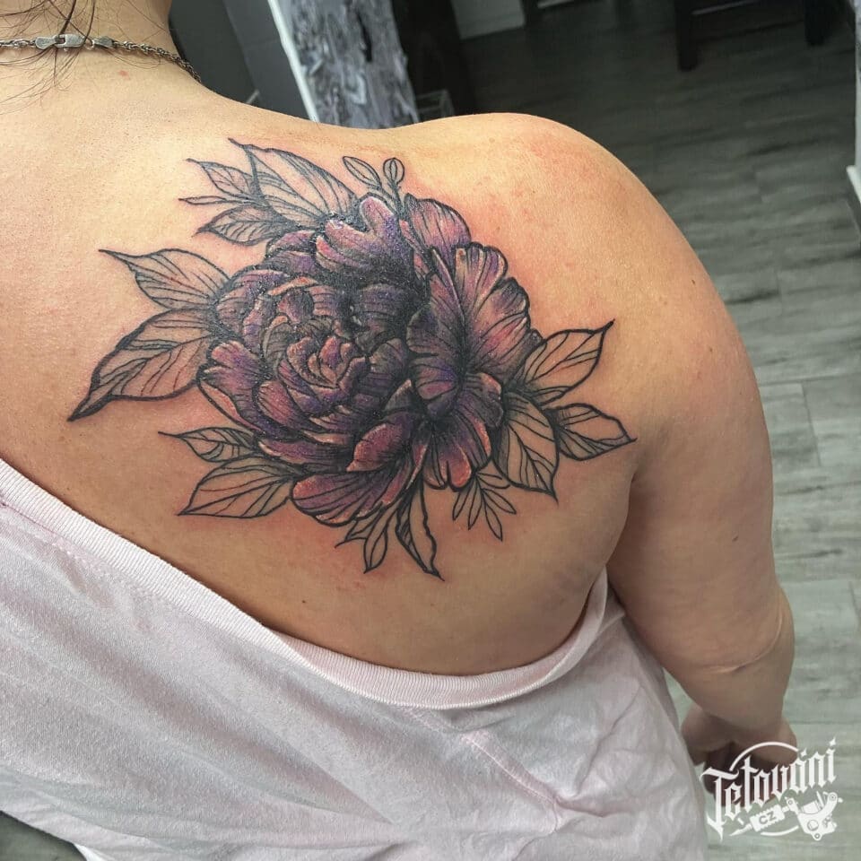 Tetování květina na lopatce na lopatce