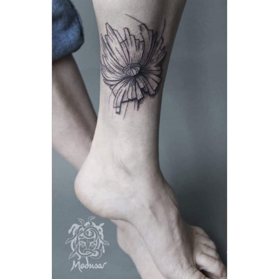 Tetování květina na lýtko