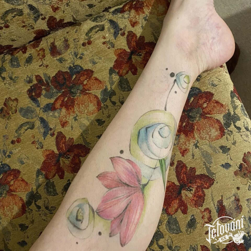 Tetování květina na lýtku