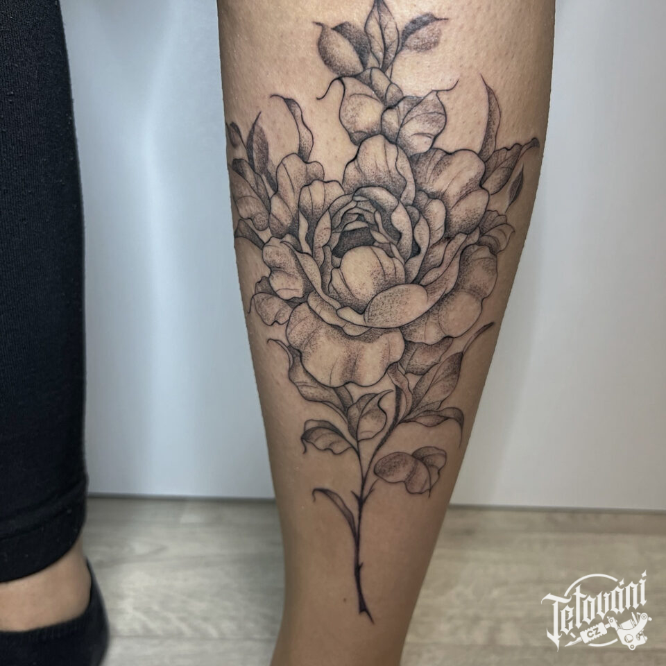 Tetování květina na lýtku