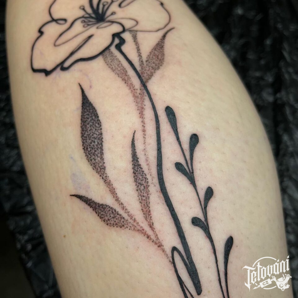 Tetování květina na lýtku