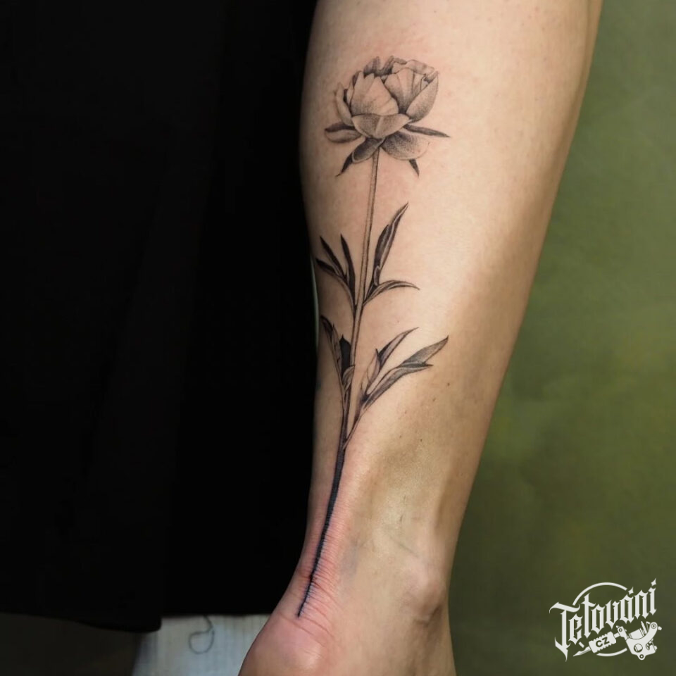 Tetování květina na lýtku