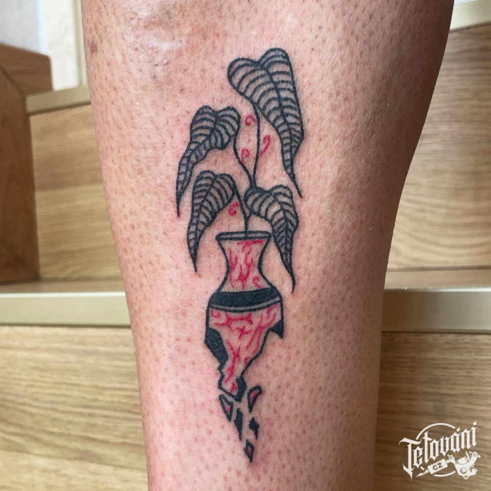 Tetování květina na lýtku