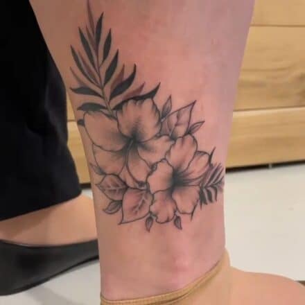 Tetování květina na lýtku