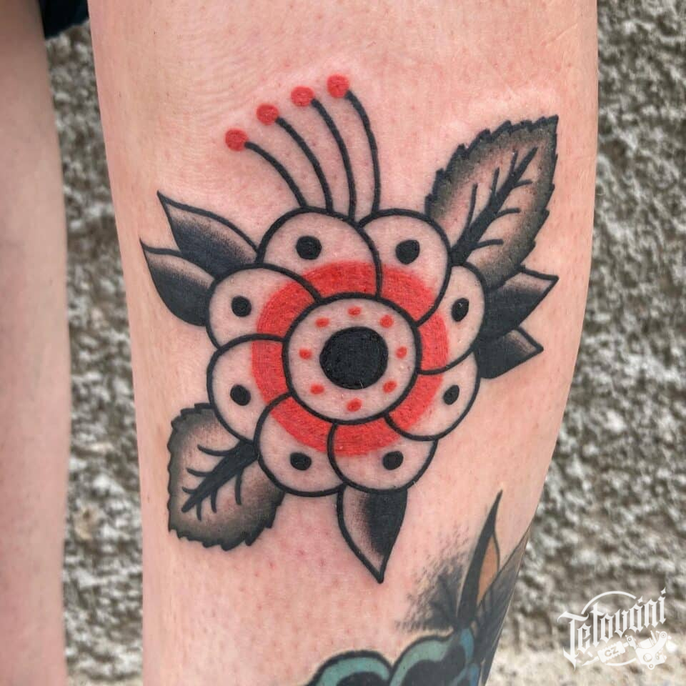 Tetování květina na lýtku