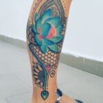 Tetování květina na lýtku