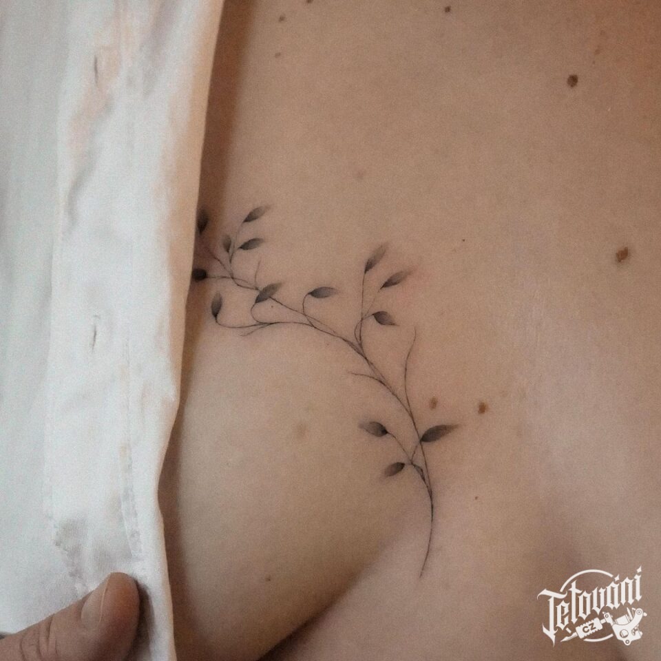 Tetování květina na prsu