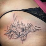 Tetování květina na stehně