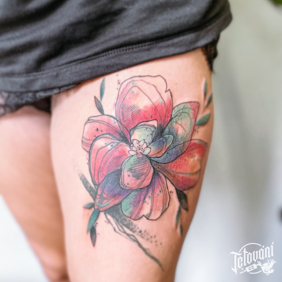 Tetování květina na stehně