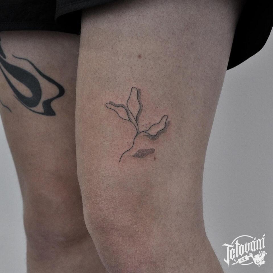 Tetování květina na stehně