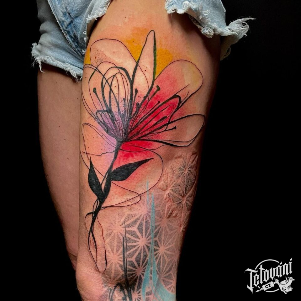 Tetování květina na stehně