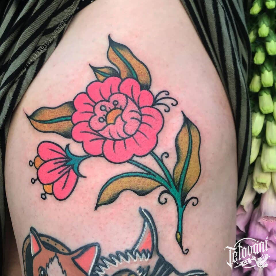 Tetování květina na stehně