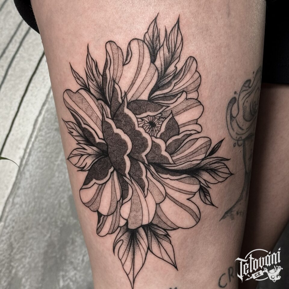 Tetování květina na stehno