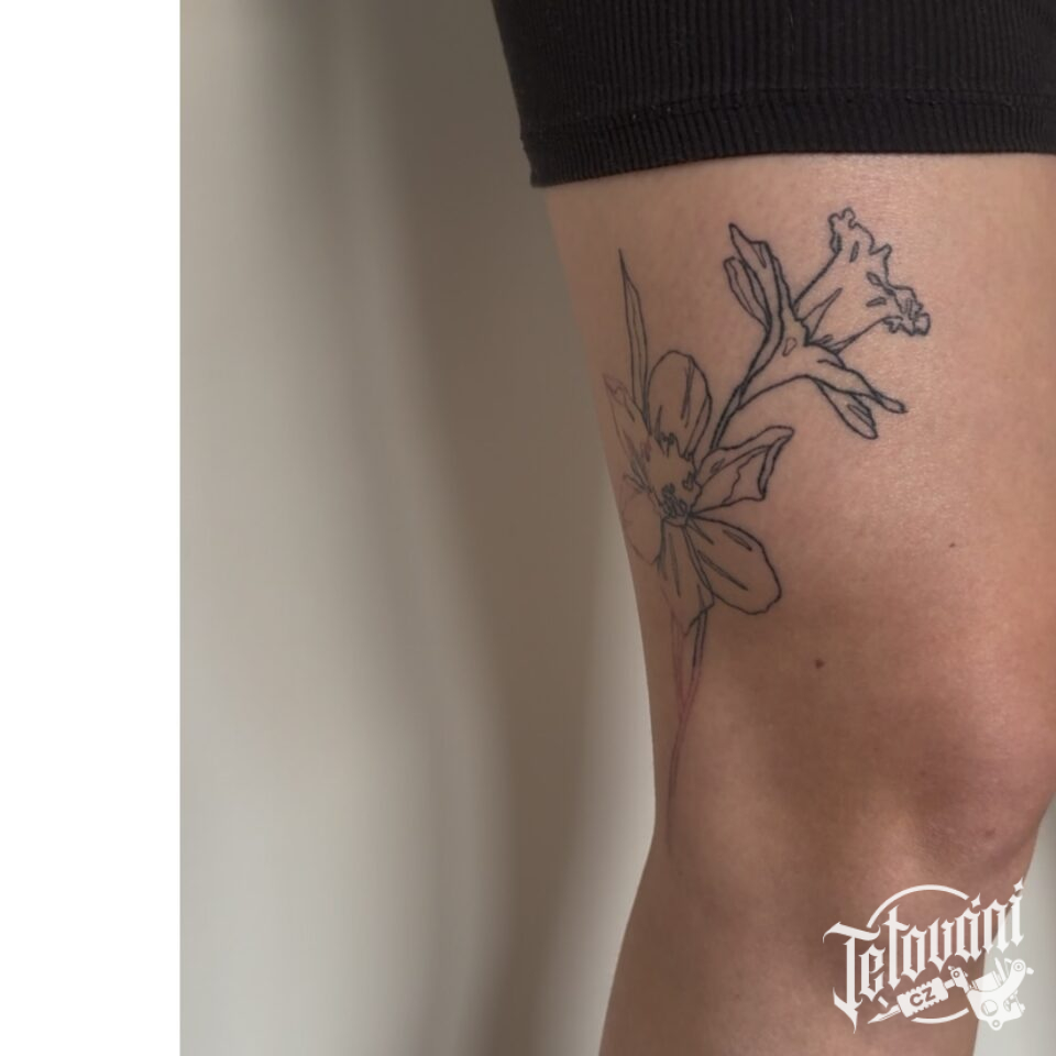 Tetování květina na stehno