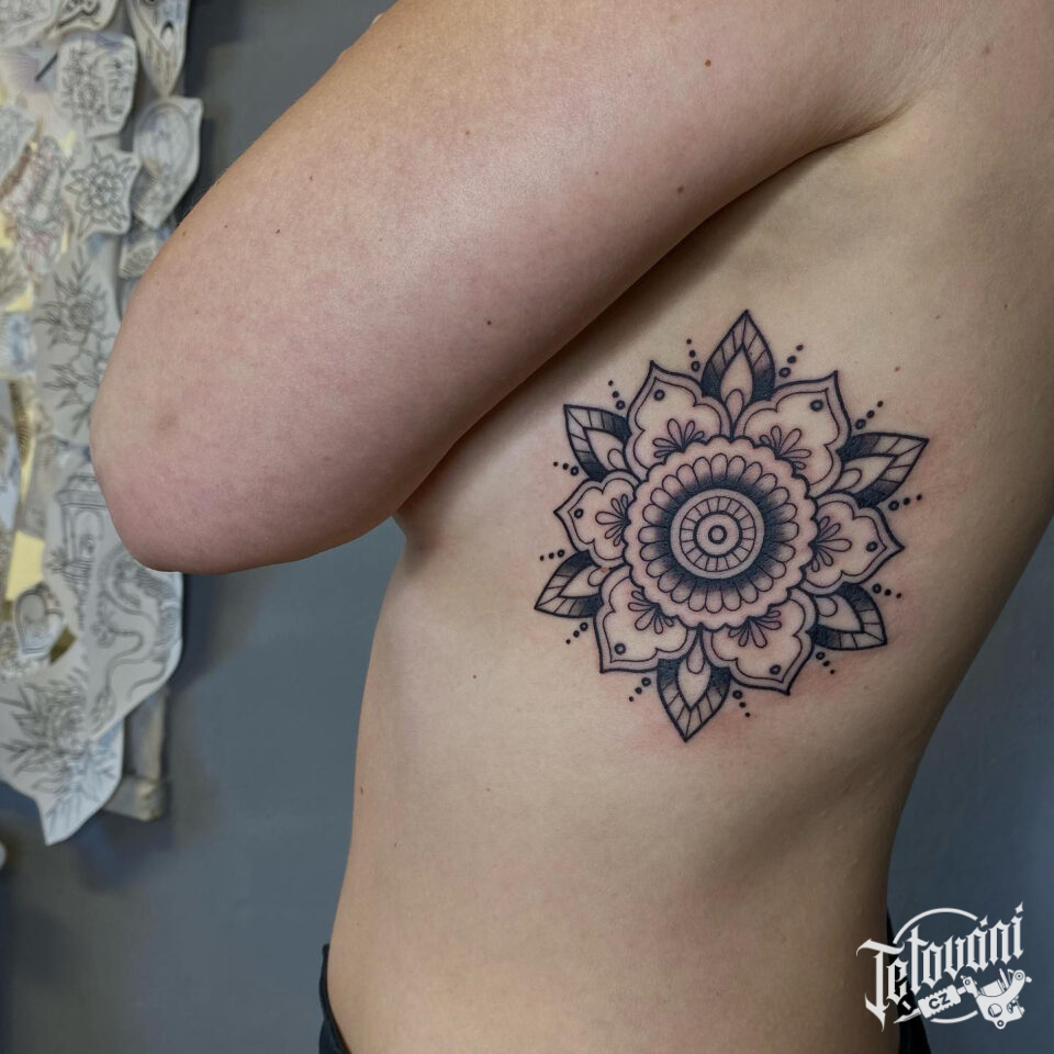 Tetování květina na žebrech