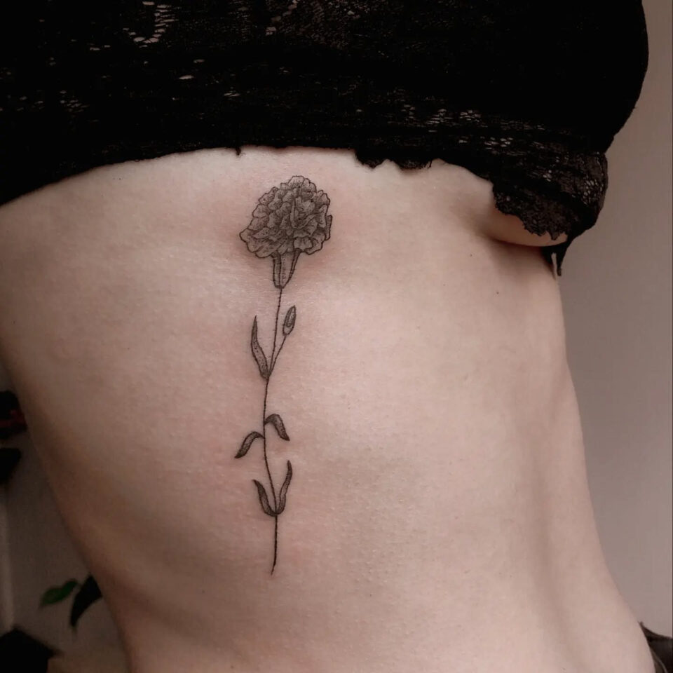 Tetování květina na žebrech
