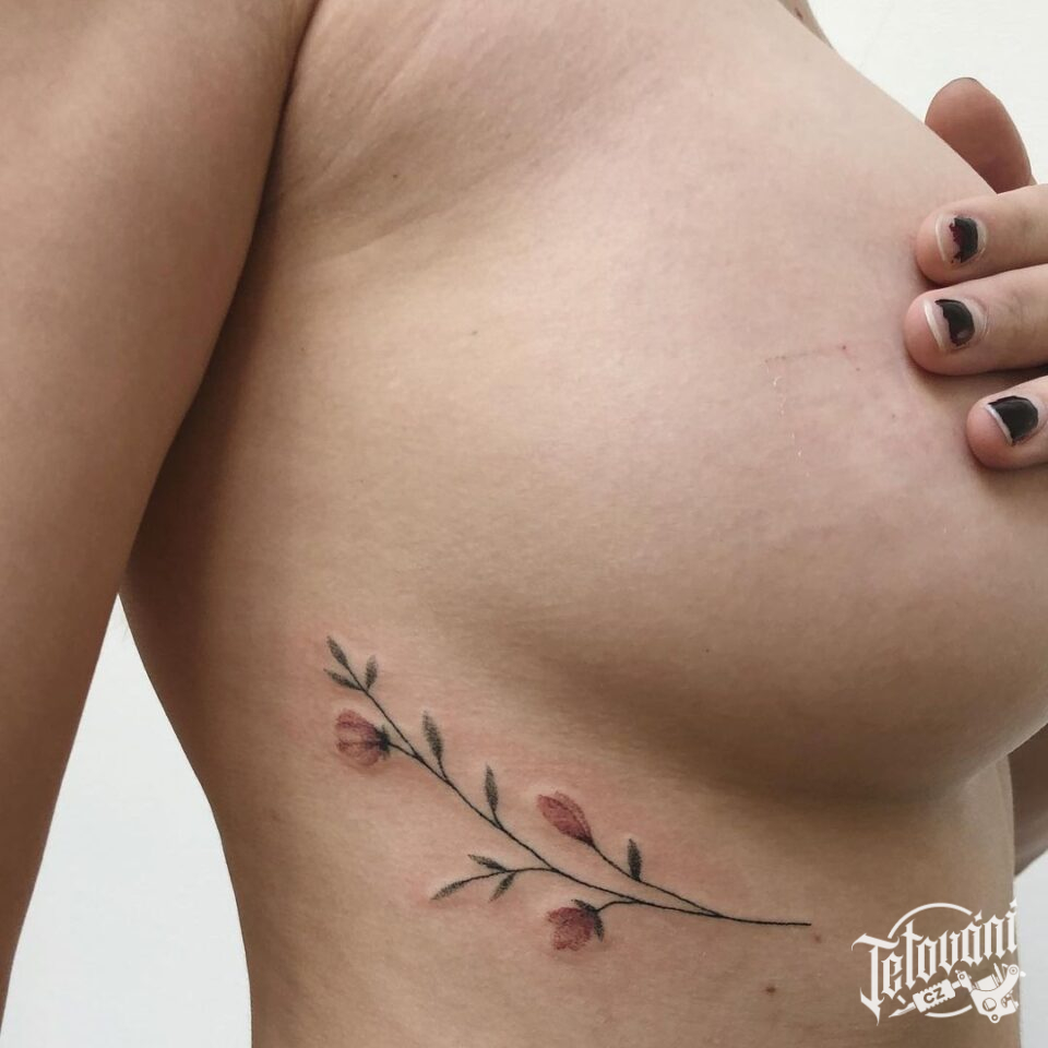 Tetování květina na žebrech