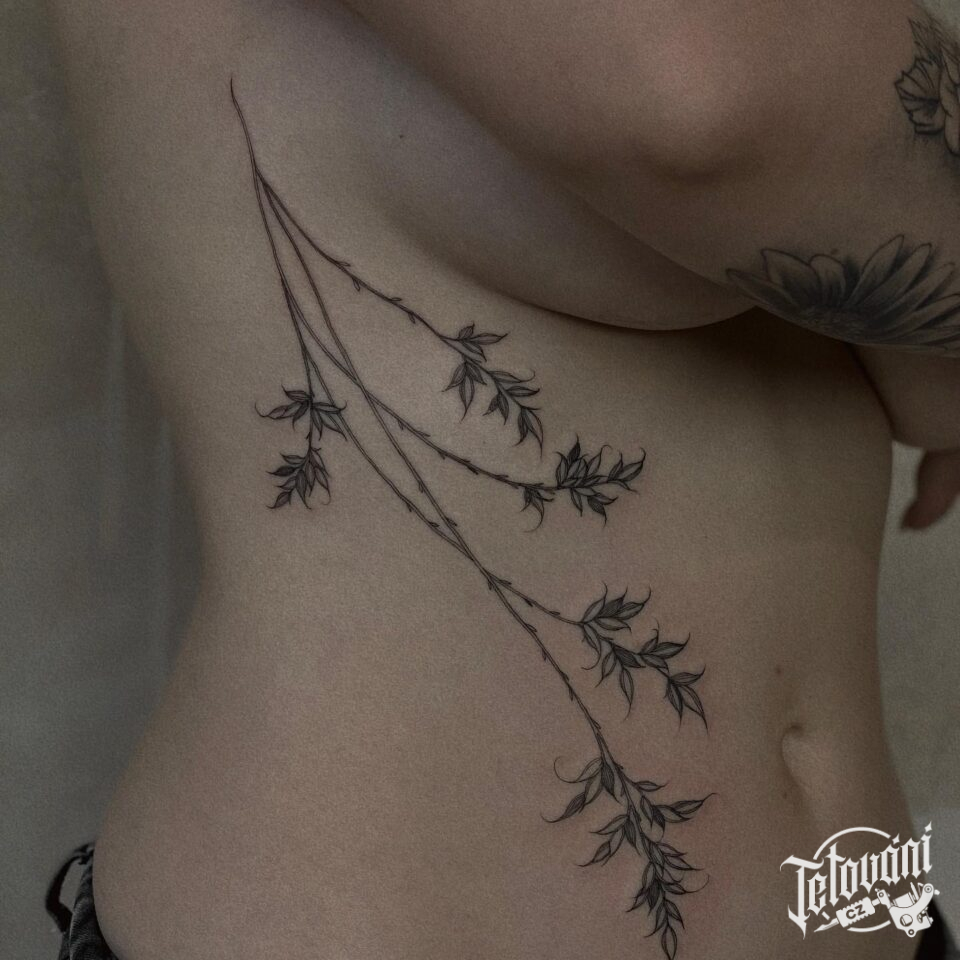 Tetování květina na žebrech