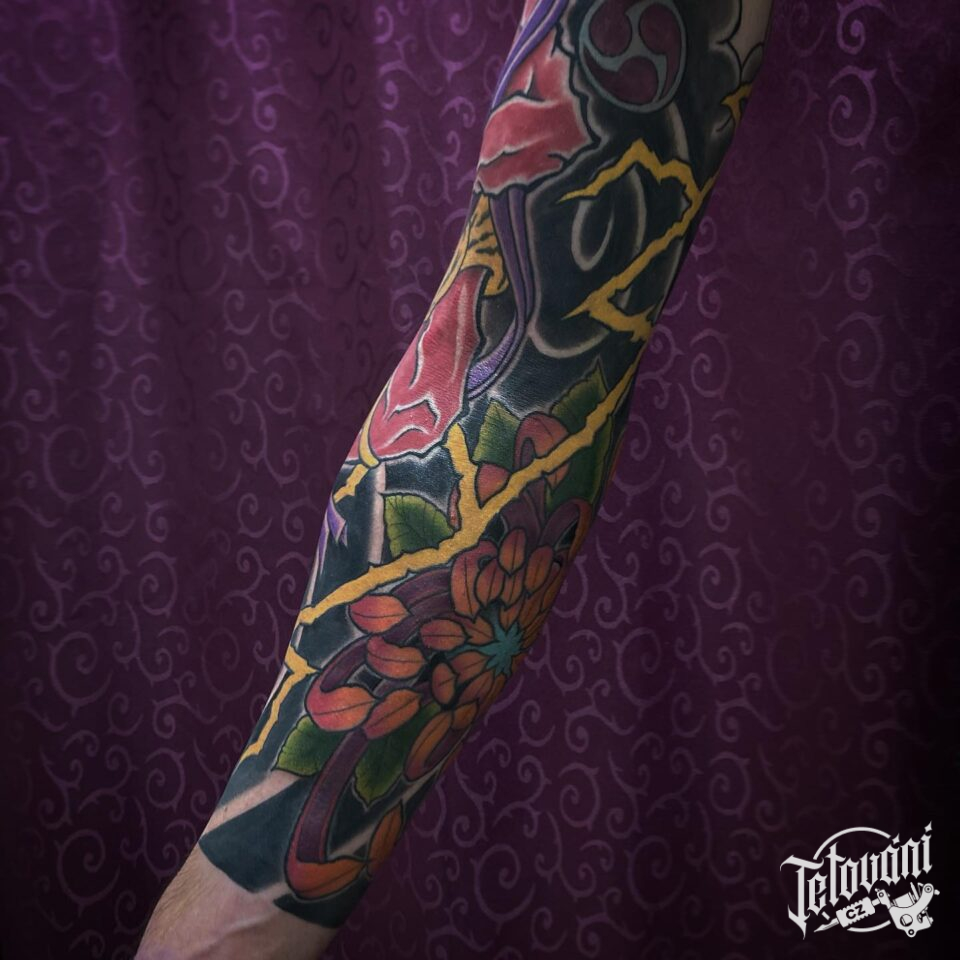 Tetování květina, ornamenty, rukáv