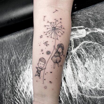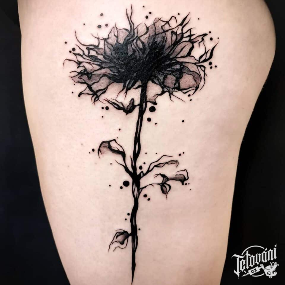 Tetování květina, pampeliška na bok stehna