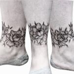Tetování květina pivoňka na kotník