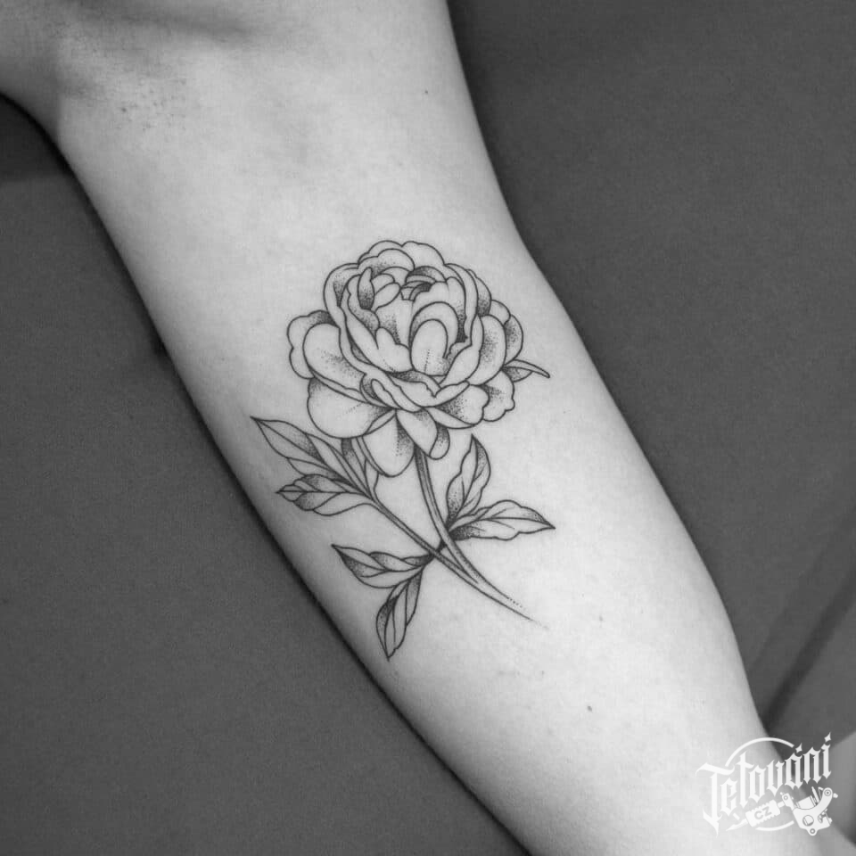 Tetování květina, pivoňka na paži