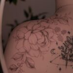 Tetování květina pivoňka na rameno