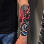 Tetování květina, portrét ženy s růží na předloktí