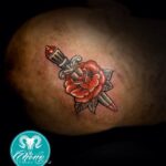 Tetování květina, růže a dýka na hlavu