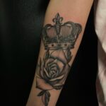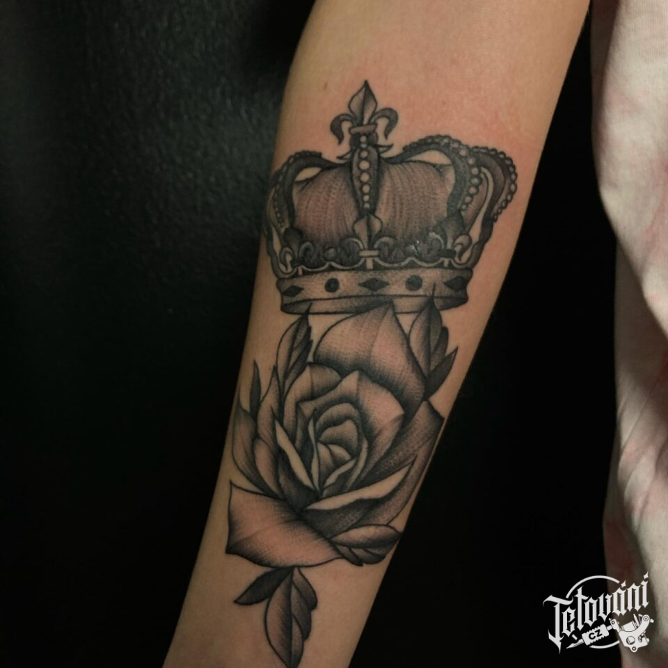 Tetování květina, růže, koruna na předloktí