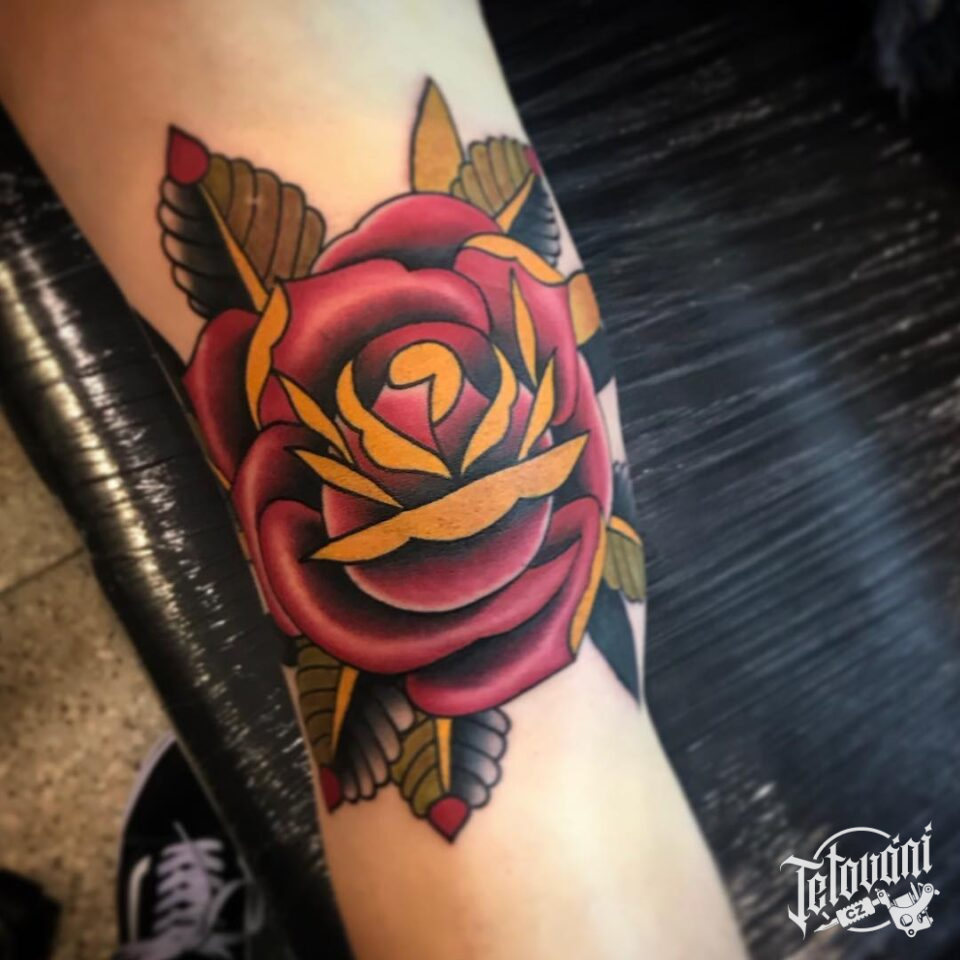 Tetování květina, růže ma paži