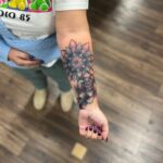 Tetování květina růže, mandala symbol na předloktí