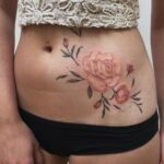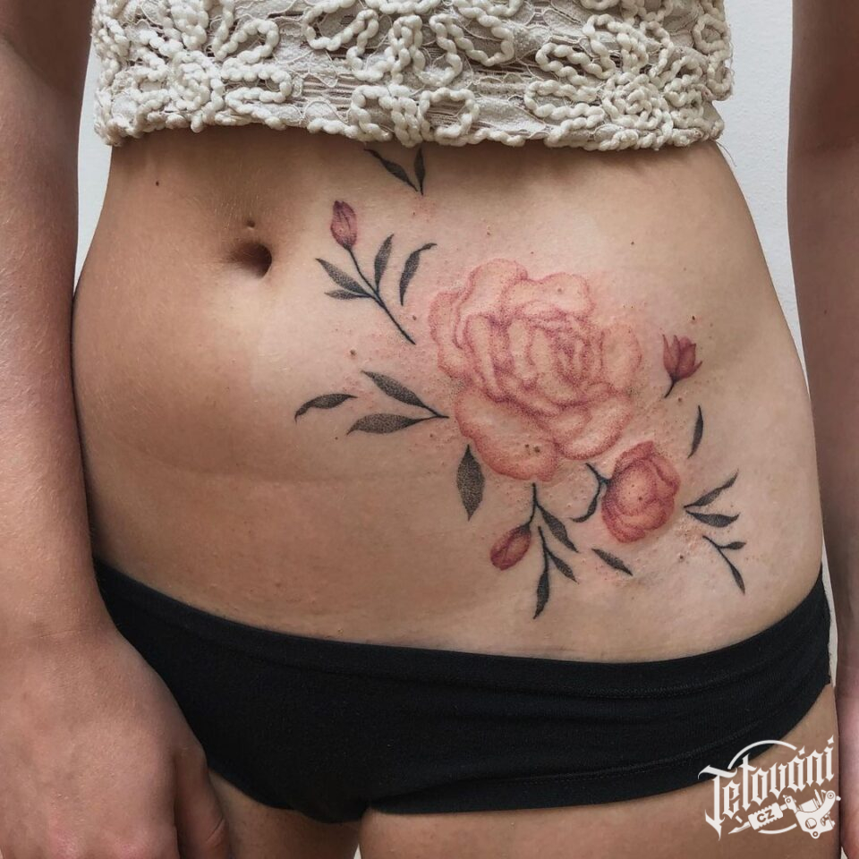 Tetování květina, růže na břichu
