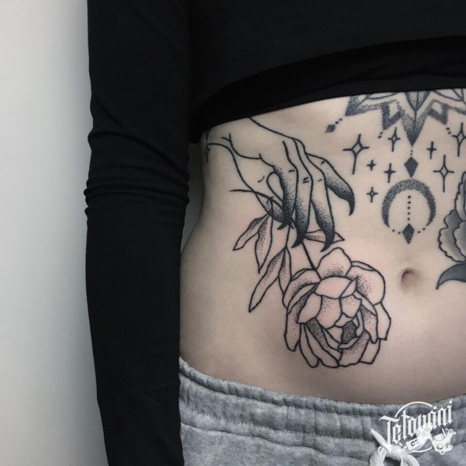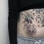 Tetování květina, růže na břichu