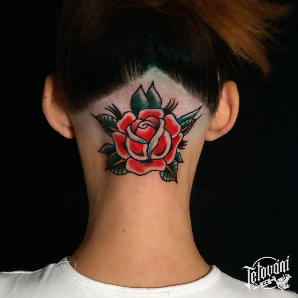 Tetování květina, růže na hlavě