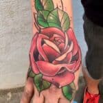 Tetování květina růže na hřbet ruky