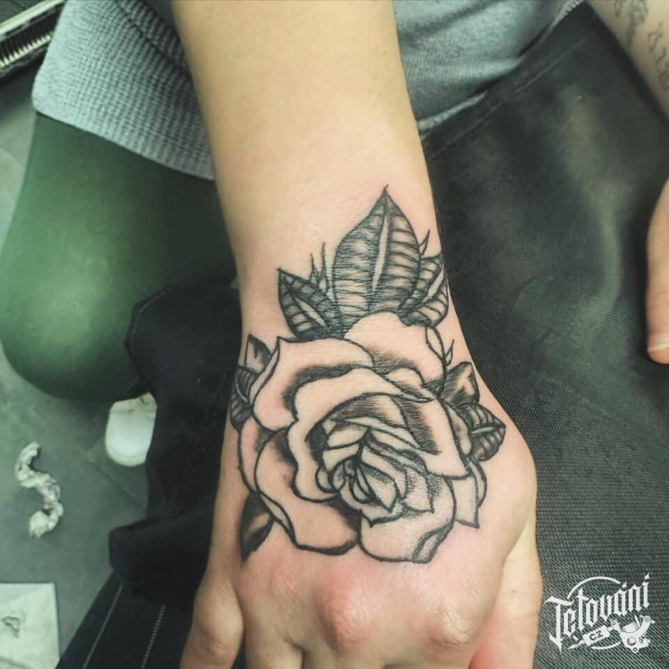 Tetování květina růže na hřbet ruky